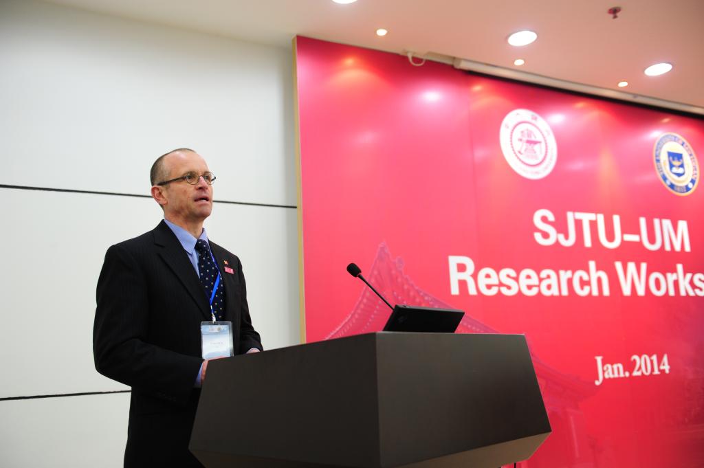 梅宏在致辭中回顧了上海交大與密西根大學(xué)多年的密切聯(lián)系和深厚的合作基礎(chǔ)。在雙方的大力支持下,上海交大與密西根大學(xué)的聯(lián)合研究項目在科學(xué)研究、人才培養(yǎng)和基地建設(shè)等方面取得了突出成績,促進了全球高等教育交流,推動了世界一流大學(xué)的建設(shè)。近年來,兩校在納米領(lǐng)域均不斷深入發(fā)展,梅宏希望,通過此次研討會,兩校能在既有的生物醫(yī)學(xué)工程及可再生能源領(lǐng)域的合作基礎(chǔ)上,拓展更多的合作可能,在納米技術(shù)方面開拓新的合作空間,促成更多的成果產(chǎn)生,同時努力使兩校的合作發(fā)展成為中國和國際上成功的國際性校際合作范例,在聯(lián)合發(fā)表論文、聯(lián)合培養(yǎng)研究生及申請國際科技合作項目等方面取得重要突破。